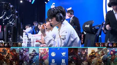 本局AL放出了本赛季打野位上非常强势的杰斯,双方在下路河道开启了大混战,Photic伊泽瑞尔赶来收掉了残血,iG拿到优势,虽然AL中期接连开死杰斯,但是iG输出位还是更多,Jwei牛头也数次开到数人,iG拿到龙魂和大龙后终结比赛扳回一局!