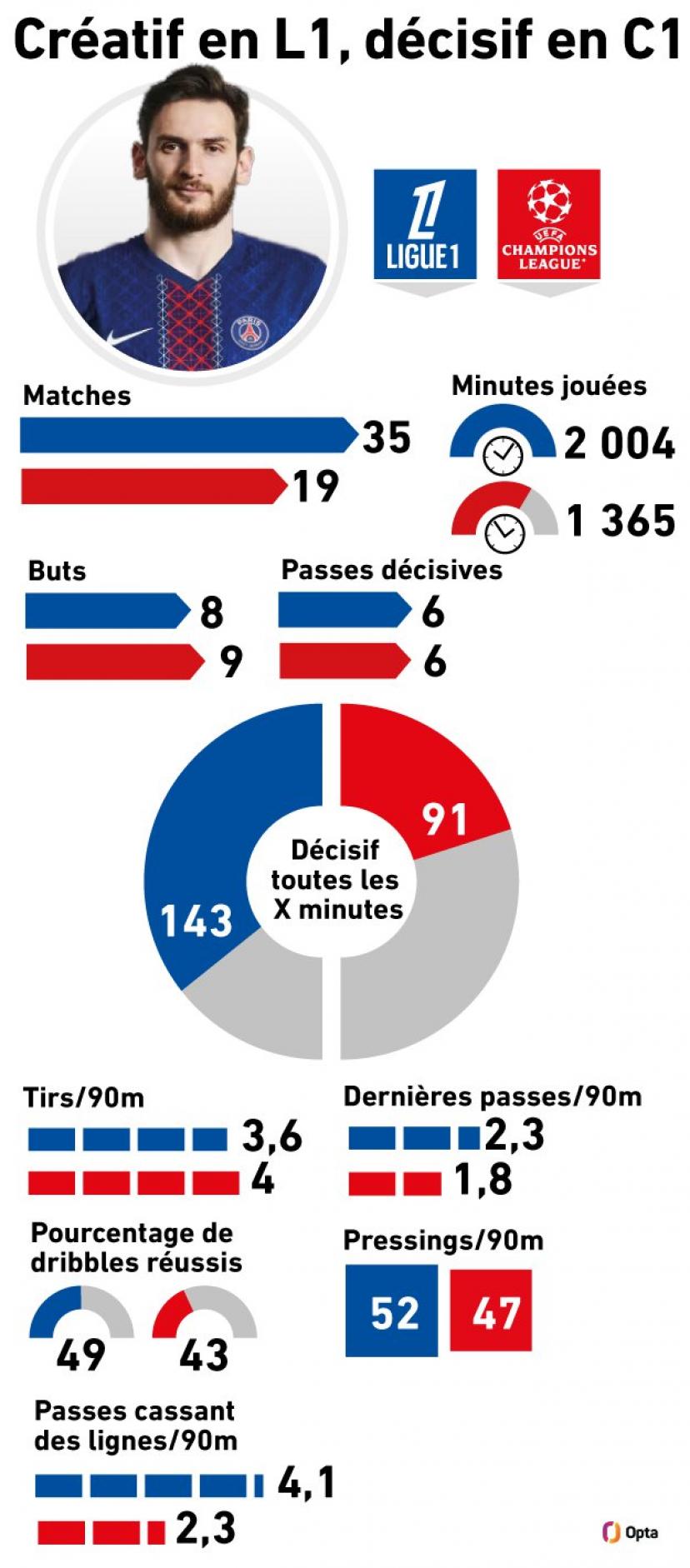 “而欧冠和法甲的比赛方式不同,欧冠的比赛更开放,更多攻防转换,这更适合他的特点。而在法国情况并非如此,对手的防线都收缩得很深。这不是他的问题,他备战和对待比赛的态度都是一样的,”